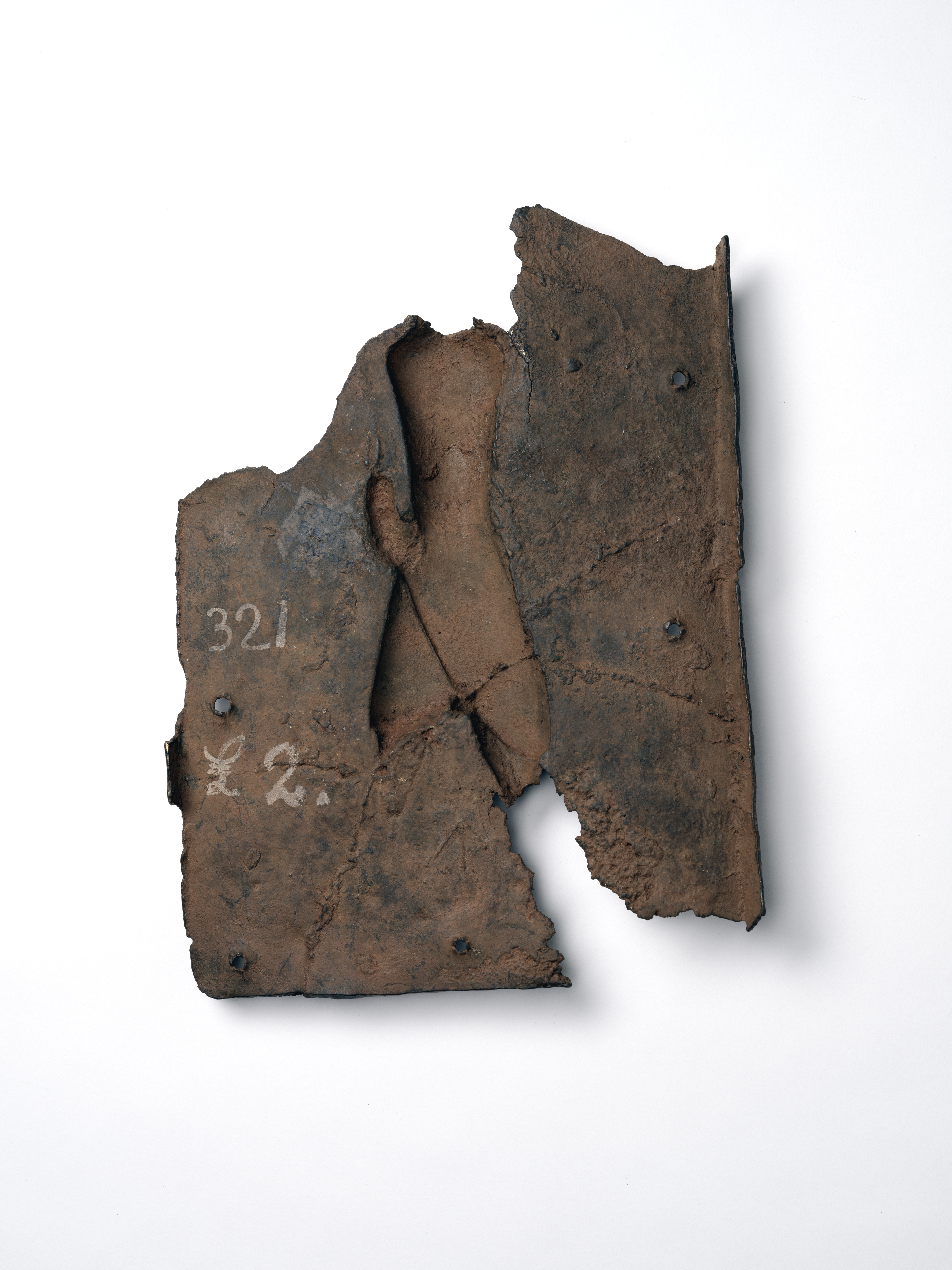 | Object Name | Fragment of a high relief (copper alloy) plaque depicting features of a man and a half moon |