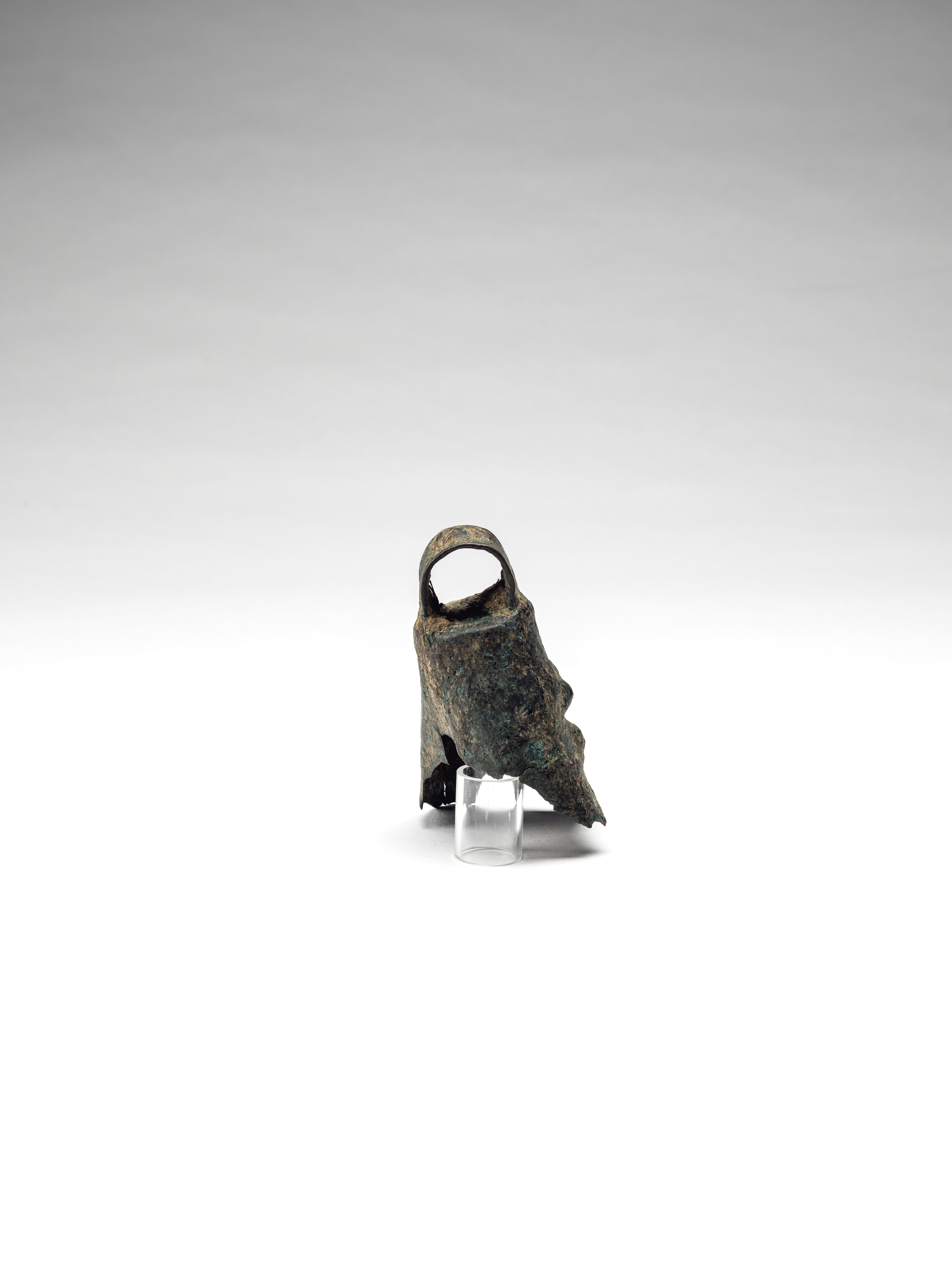 | Description | These bells stood on the altars in the courtyards of the royal palace and sounded at the beginning of ceremonies in honor of the ancestors. And they were worn around the neck of soldiers, as amulets and badges of rank. They have been recorded in southern Nigeria since the 9th century, and in the 16th century they were exported as far as England. At the same time, the royal court imported other bells from Europe. Text: Dietmar Neitzke. |